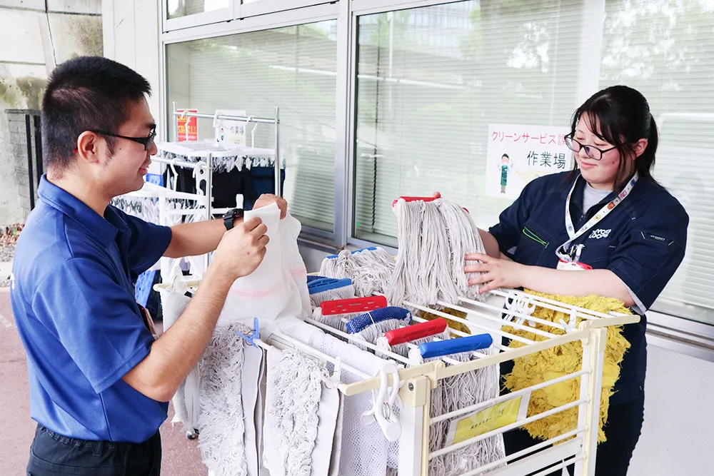 清掃作業は、細かいところまでするので、覚えることが多くて最初はできないことだらけでしたが、先輩や周りの人がていねいに教えてくれて、一人で作業できるようになりました。