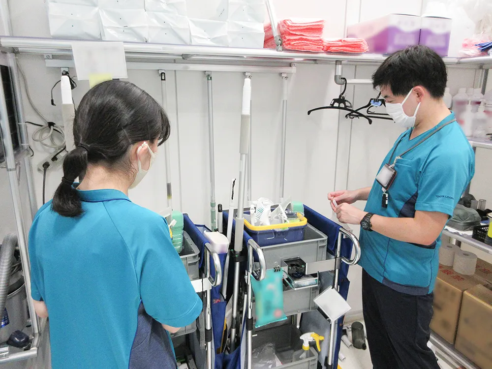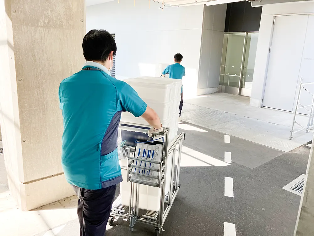 台車に荷物を載せて各病棟に運搬する時、順路が複雑で分かりにくかったけれど、毎日運搬していたら覚えられました。