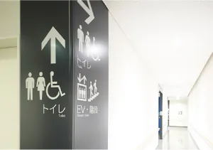弱視のある方でも見やすい文字、ピクトサイズ、コントラストを確保した色調を採用するとともに、空間の輪郭や目標物の位置がわかりやすい照明としています。